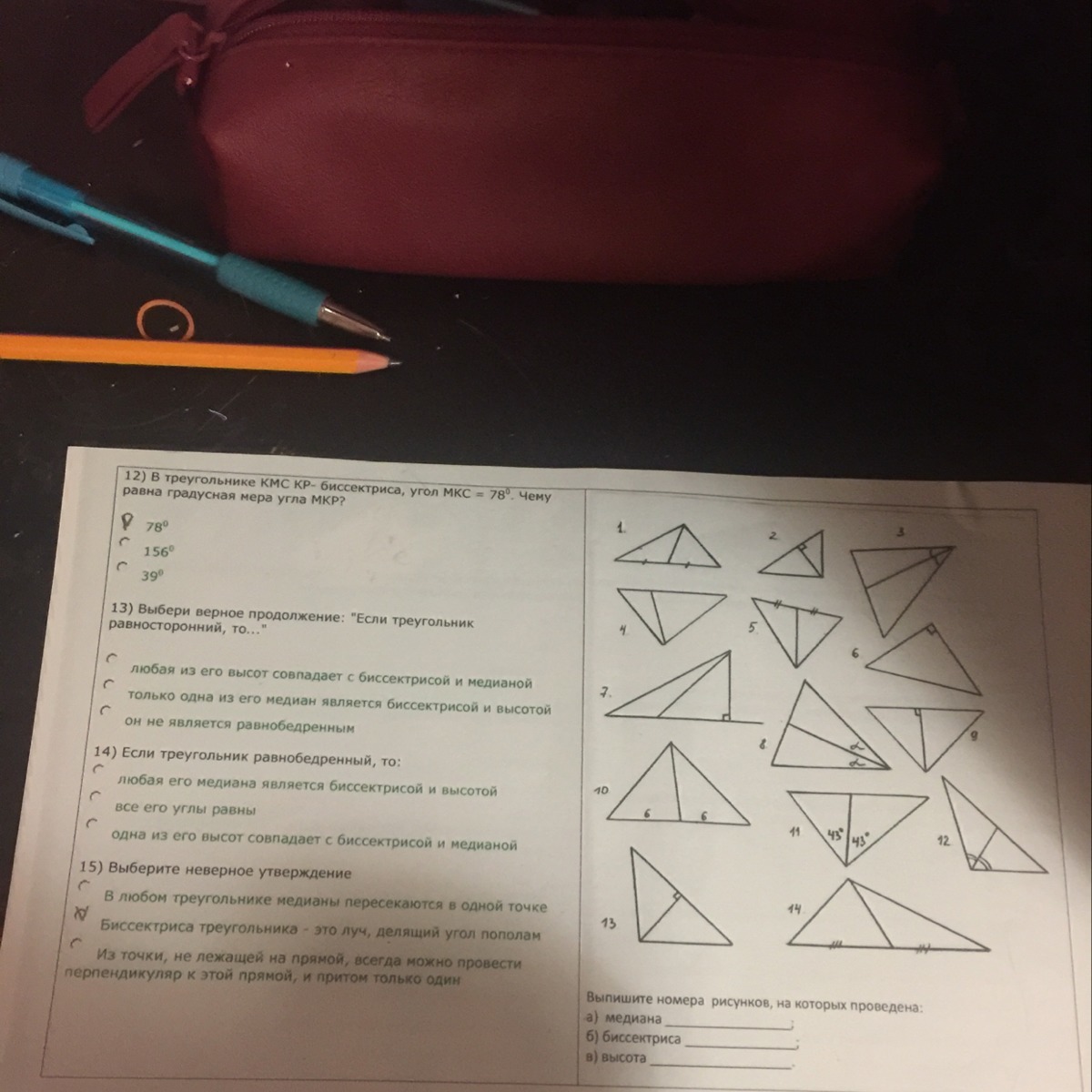 12) 78 13) 1-любая из его высот 14)3 15) 1