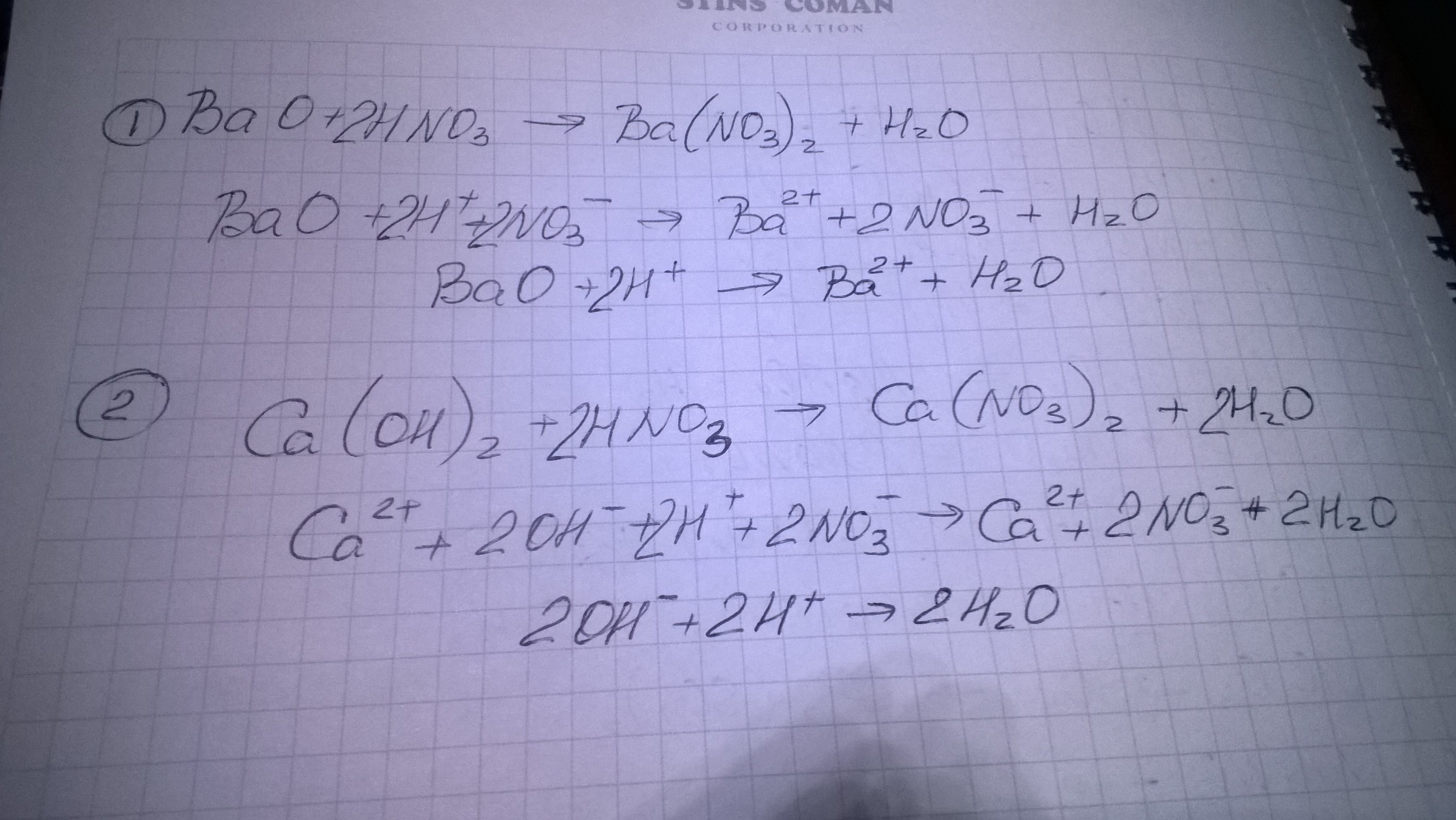 Составьте уравнение реакций в молекулярной полной и сокращенной ионной формах BaO+HNO3-