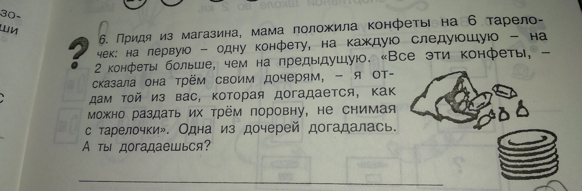 Нужно просто дать по две определённых тарелки каждой дочери.
