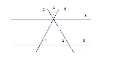 На рисунке прямые a и b параллельны, ∠1 = 17°, ∠2 = 26°.