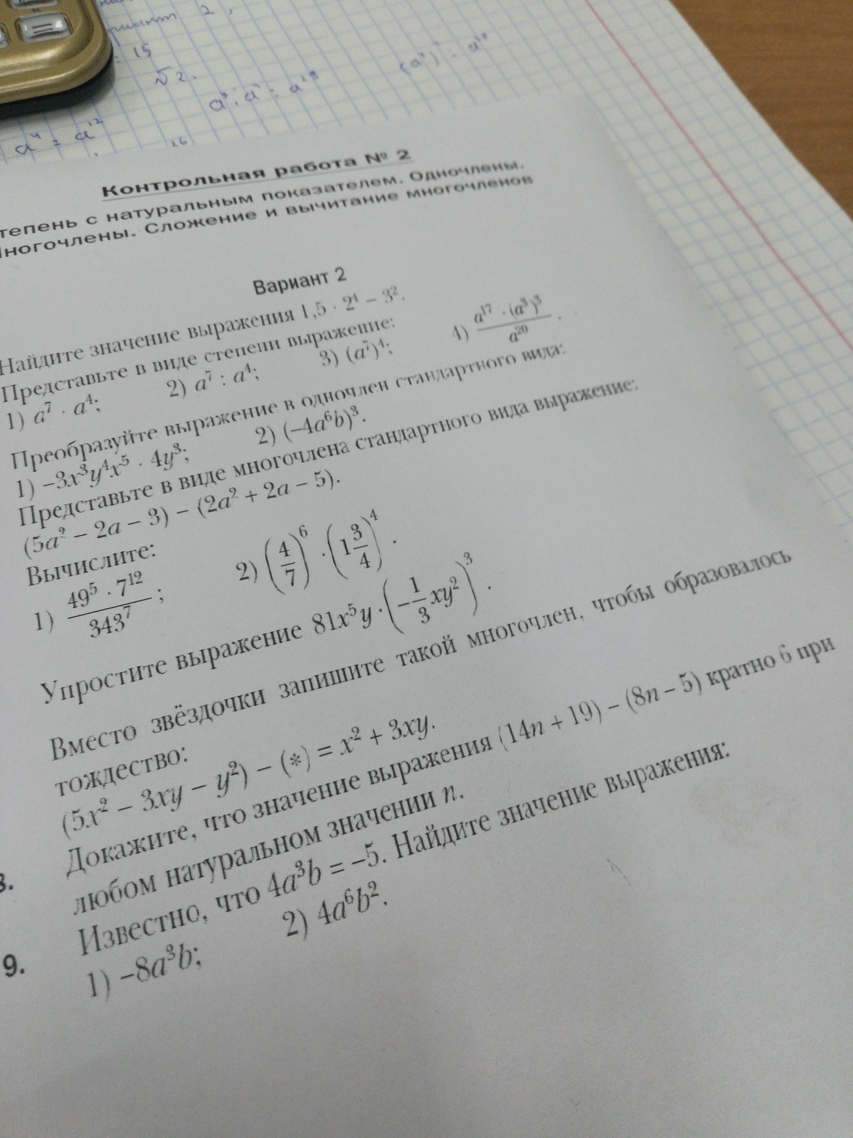49^5 × 7^12 / 343^7 = ( 7^2) ^5 × 7^12 / (7^3)^7 = 7^10 × 7^12 / 7^21 = 7^ 22 / 7^21 = 7 ответ 7
