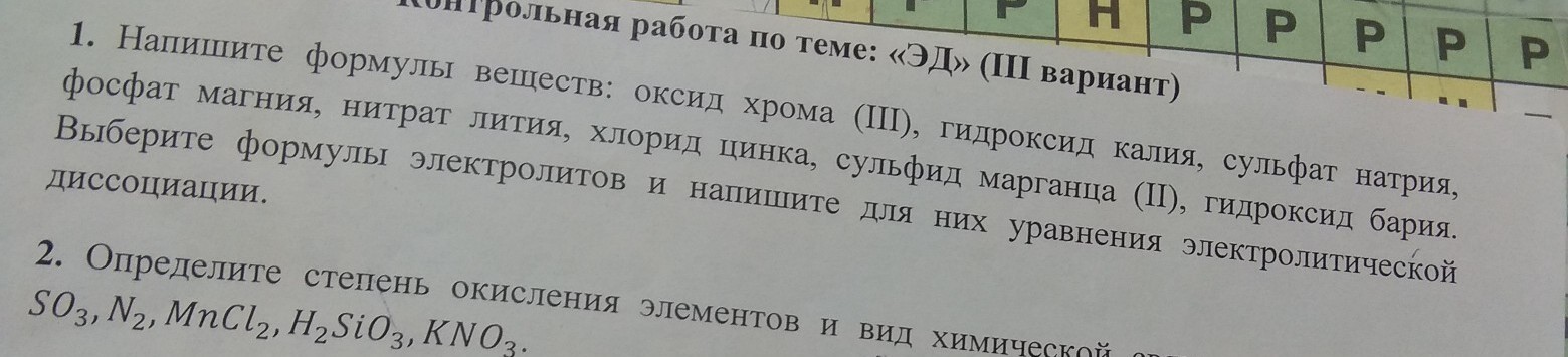 Cr₂O₃, KOH, Na₂SO₄, Mg₃(PO₄)₂, LiNO₃, ZnCI₂, MnS, Ba(OH)₂