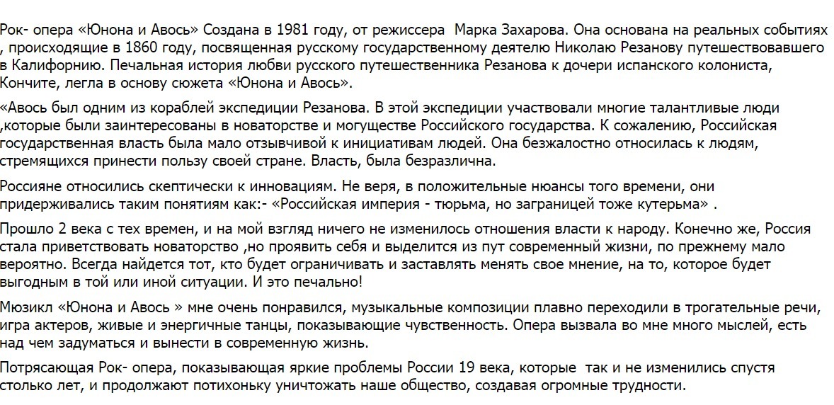 Эссе по рок-опере «Юнона и Авось»