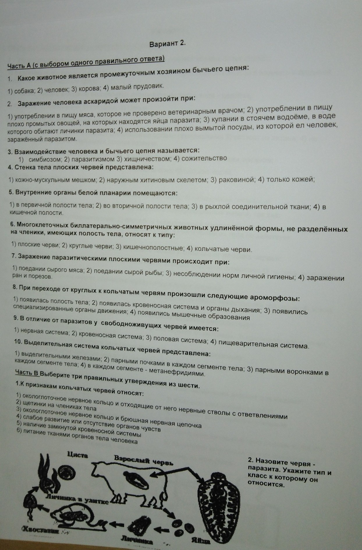 2) Паразит: Бычий цепень