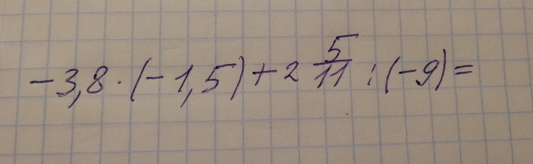 1)Первым действием умножаем-3,8*(-1,5)=5,7(при умножении минус на минус,получается положительное число)