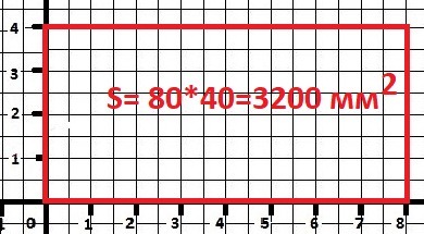S = a*b = 80*40 = 3200 мм² = 32 см² - площадь - ОТВЕТ