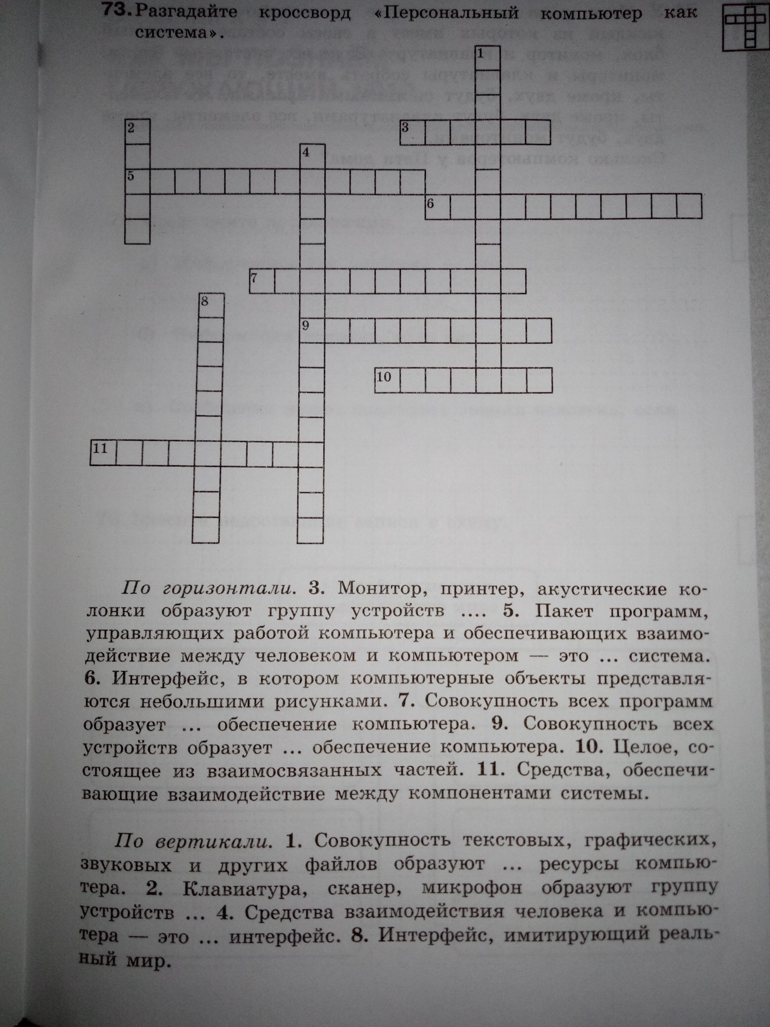 По горизонтали: 3. Вывода. 5. Операционная. 6. Графическая. 7. Программное. 9. Аппаратное. 10. Система. 11. Интерфейс.