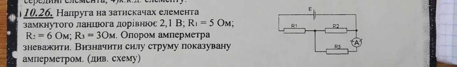 Струм, який видає джерело: I = E/R = 2,1/7 = 0,3 А.