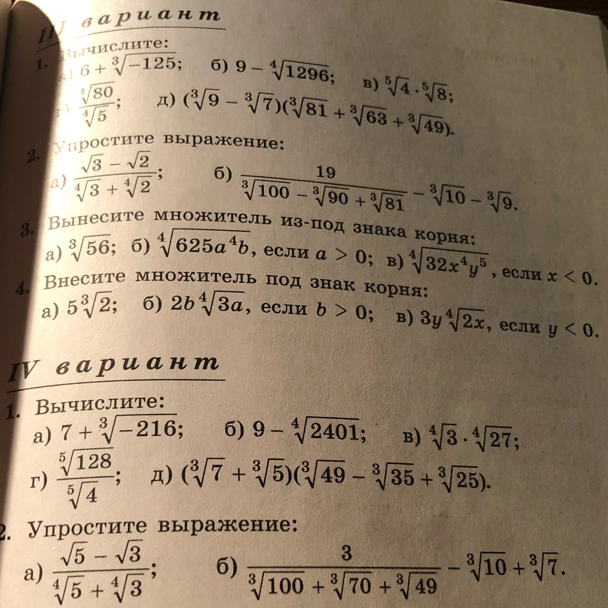 ![a)6 + sqrt[3]{ - 125} = 6 + ( - 5) = 6 - 5 = 1 \ b)9 - sqrt[4]{1296} = 9 - 6 = 3 a)6 + sqrt[3]{ - 125} = 6 + ( - 5) = 6 - 5 = 1 \ b)9 - sqrt[4]{1296} = 9 - 6 = 3](https://tex.z-dn.net/?f=a%296+%2B++sqrt%5B3%5D%7B+-+125%7D++%3D+6+%2B+%28+-+5%29+%3D+6+-+5+%3D+1+%5C+b%299+-++sqrt%5B4%5D%7B1296%7D+%3D++9+-+6+%3D+3)