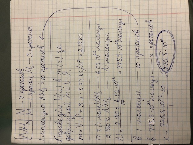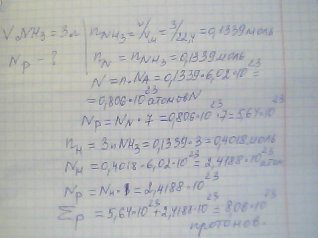N p в 1 молекуле(NH3)=7+3=10 протонов