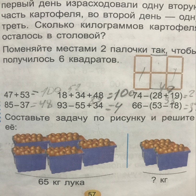 В пяти ящиках с луком 65 кг лука, сколько кг лука в двух ящиках?