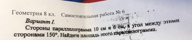 Проводишь высоту. рассматриваешь прямоугольный треугольник в котором один из углов 30 градусов. Используешь свойство прямоугольного треугольника, где угол 30 гр, против угла 30 гр лежит катет который равен половине гипотенузы. Высота равна 12см. Площадь 12 умножить на 10 равно 120см кв.
