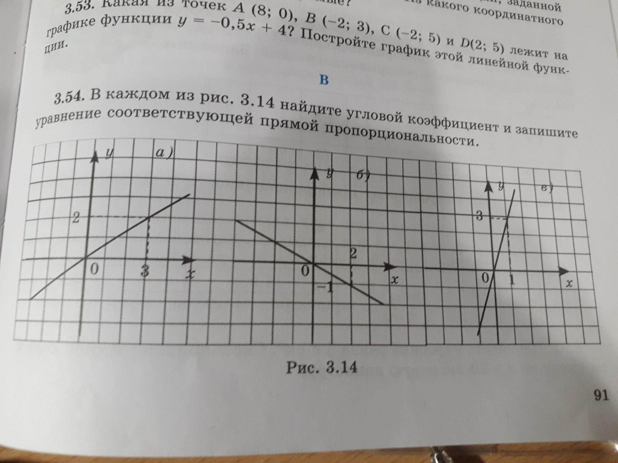 а) в=у/х =2/3, т.к. график через (0,0) ⇒ с=0