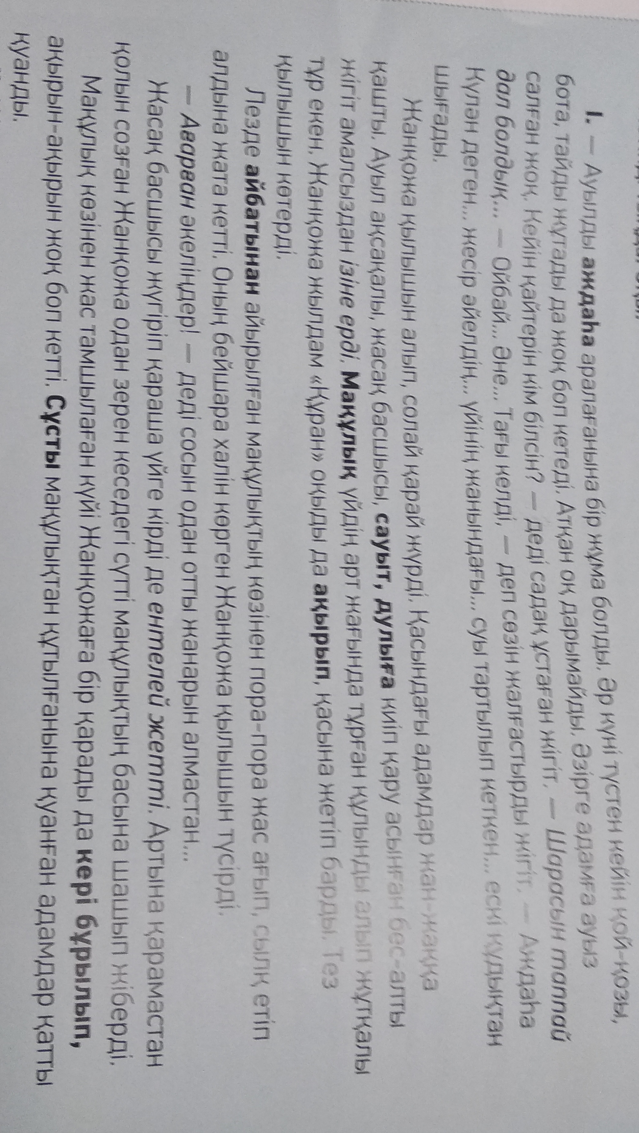 Аждаha посещал деревню в течение 1 недели.Каждый день овец и коза проглатывают и исчезает.Выстреленные пули не действовал.Тогда кто знает что?-сказал парень,даржащий лук.Мы не нашли выход.И устали от этого.Ойбай..Вот.снова пришел..-он продалжал.Аждаха Құлан ..вдова..рядом с её домом..вода была потеряна..из старого колодца выйдет.