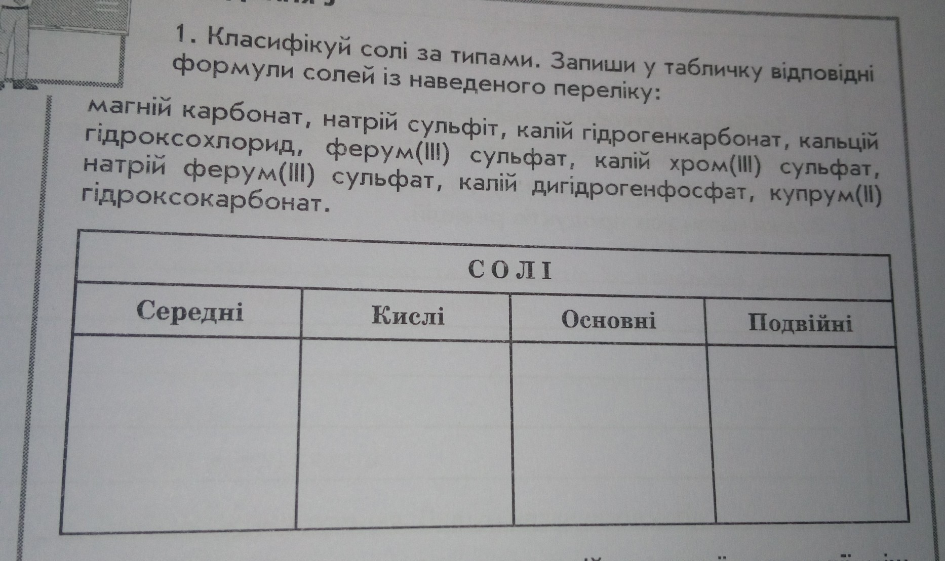 Средние соли - это сульфат натрия, карбонат магния, гидрокарбонат калия, сульфат железа. СЮДА ОТНОСЯТСЯ ВСЕ СУЛЬФАТЫ НИТРАТЫ И ФОСФАТЫ.