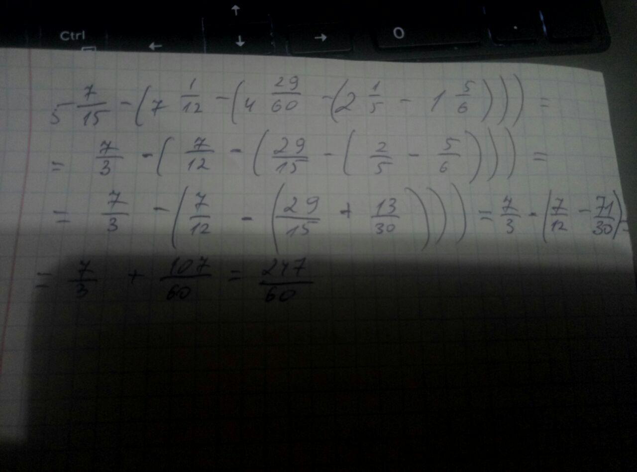 ↓ фото 1) 5целых 7/15 - (7целых 1/12 - (4целых 29/60(2целых 1/5 - 1целая 5/6)))