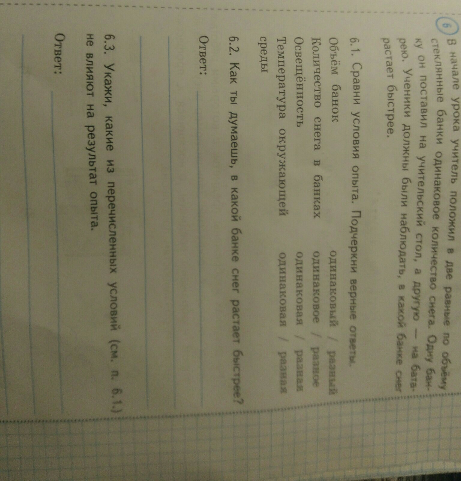 6.3. объём банок и кол-во снега.