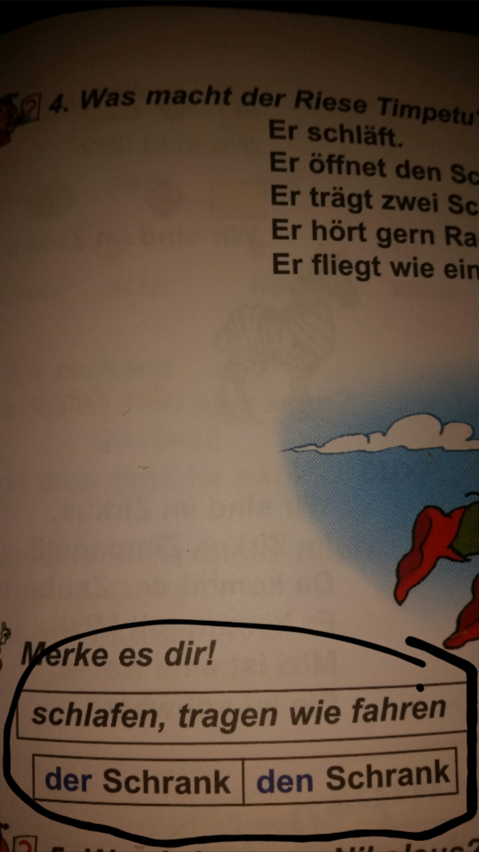 Wir schlafen, öffnen, tragen, hören, fliegen