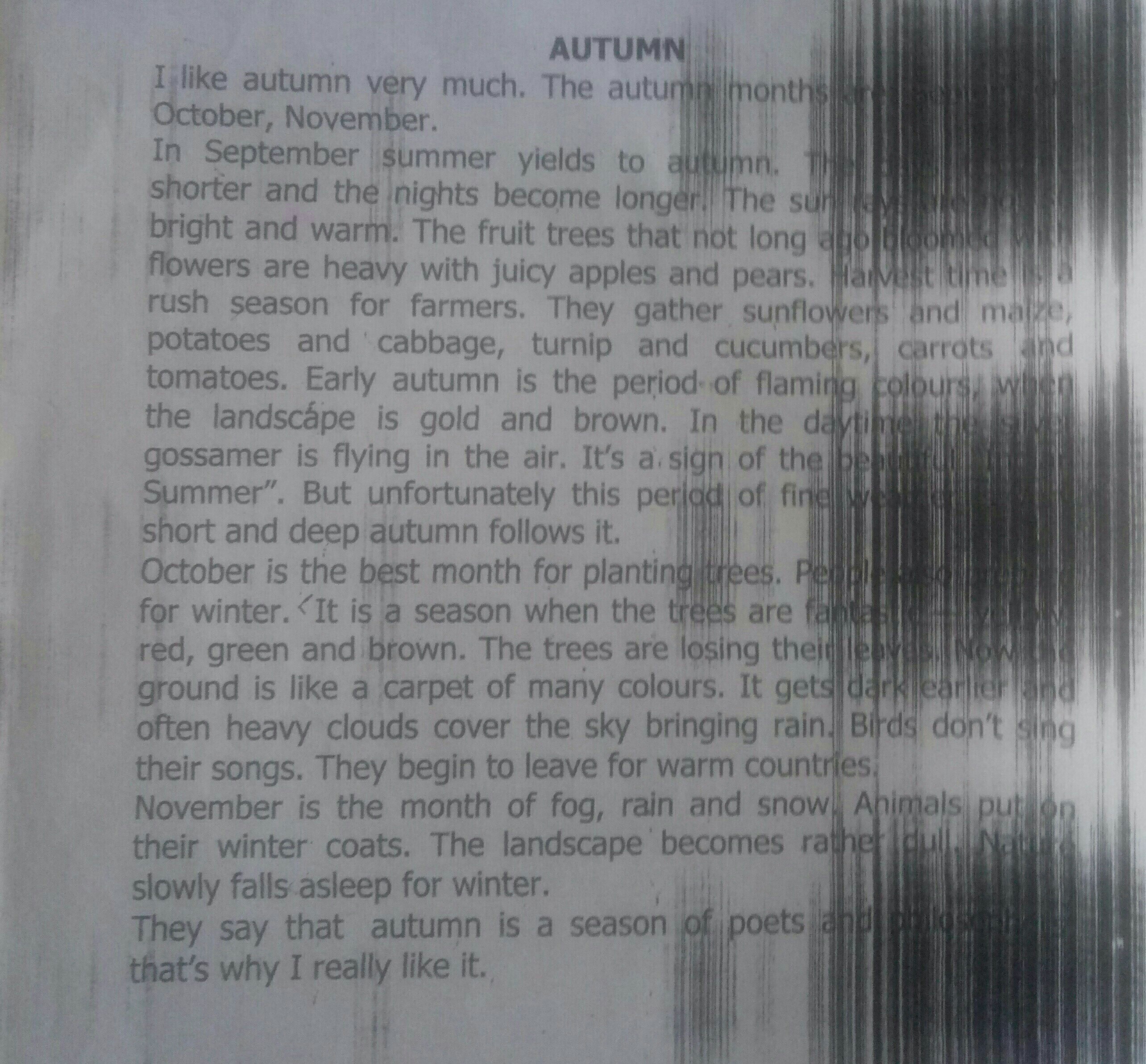 Я очень люблю осень. Осенние месяцы: сентябрь, октябрь, ноябрь.