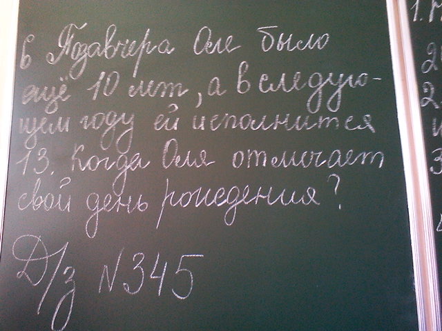 6) отмечала день рождения 30 или 31 декабря. Т.е сегодня 1 января, по завчера ей было еще 10 лет. т.е 30 или 31 декабря как вам угодно. Сегодня 1 января т.е новый год к примеру 2013 , а др было в 2012 . Т.е сейчас 2013 и ей уже 11 лет. В конце этого года 30 декабря ей будет 12 лет и на следуюший 2014 ей исполниться 13 лет.