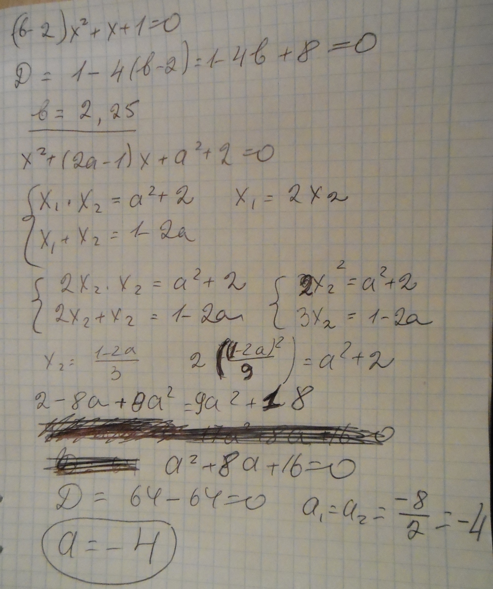 При b=2 и b=2.25 данное квадратное уравнение имеет единственное решение.