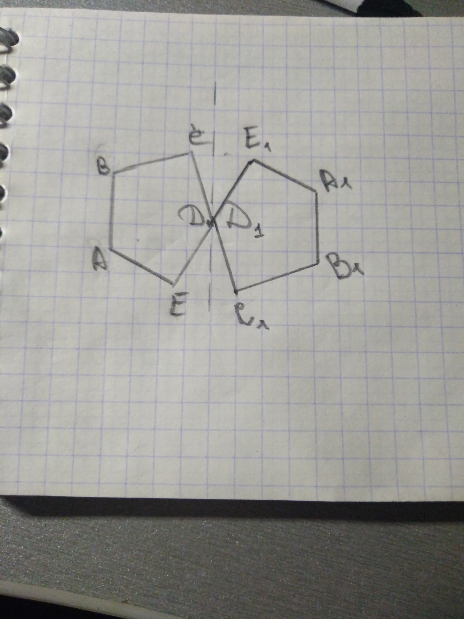 Дан произвольный пятиугольник ABCDE построить пятиугольник симметричный данному относительно центра D