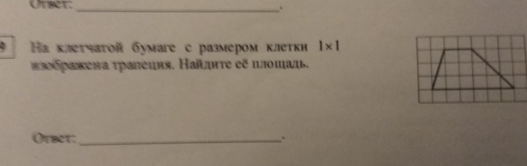площадь трапеции равна сума основа, деленная на два, умноженная на высоту