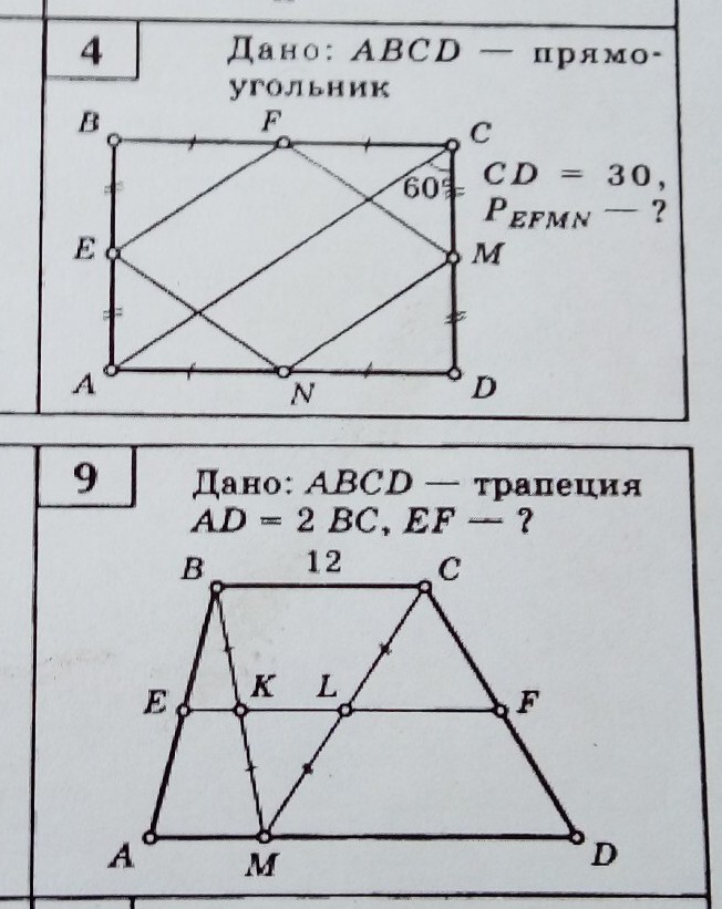 4. ∠CAD=90°-60°=30° ⇒ катет СD равен половине гипотенуза АС, тогда АС=30*2=60. ЕF - средняя линия треугольника АВС и равна половине АС, то есть EF=60/2=30