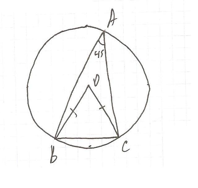 45 градусов = 1/2 дуге BC