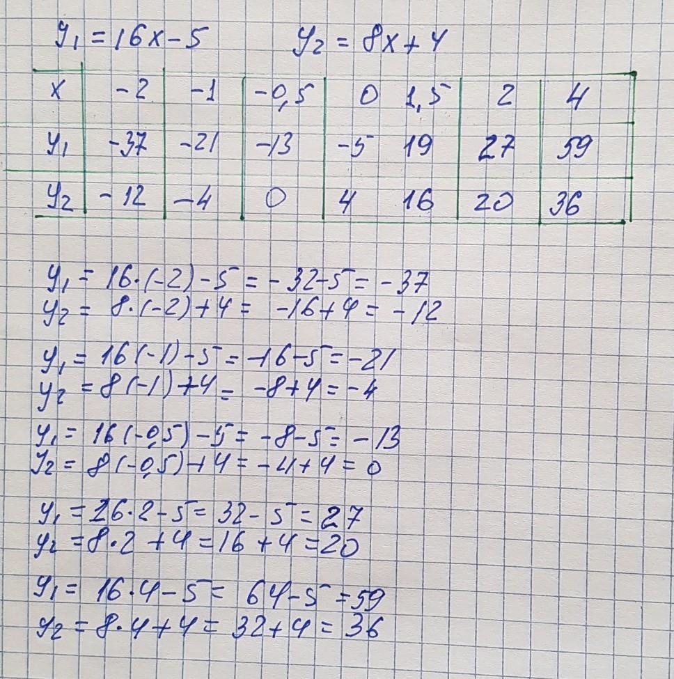 Линейные функции заданы формулами y1=16x-5 и y2=8x+4