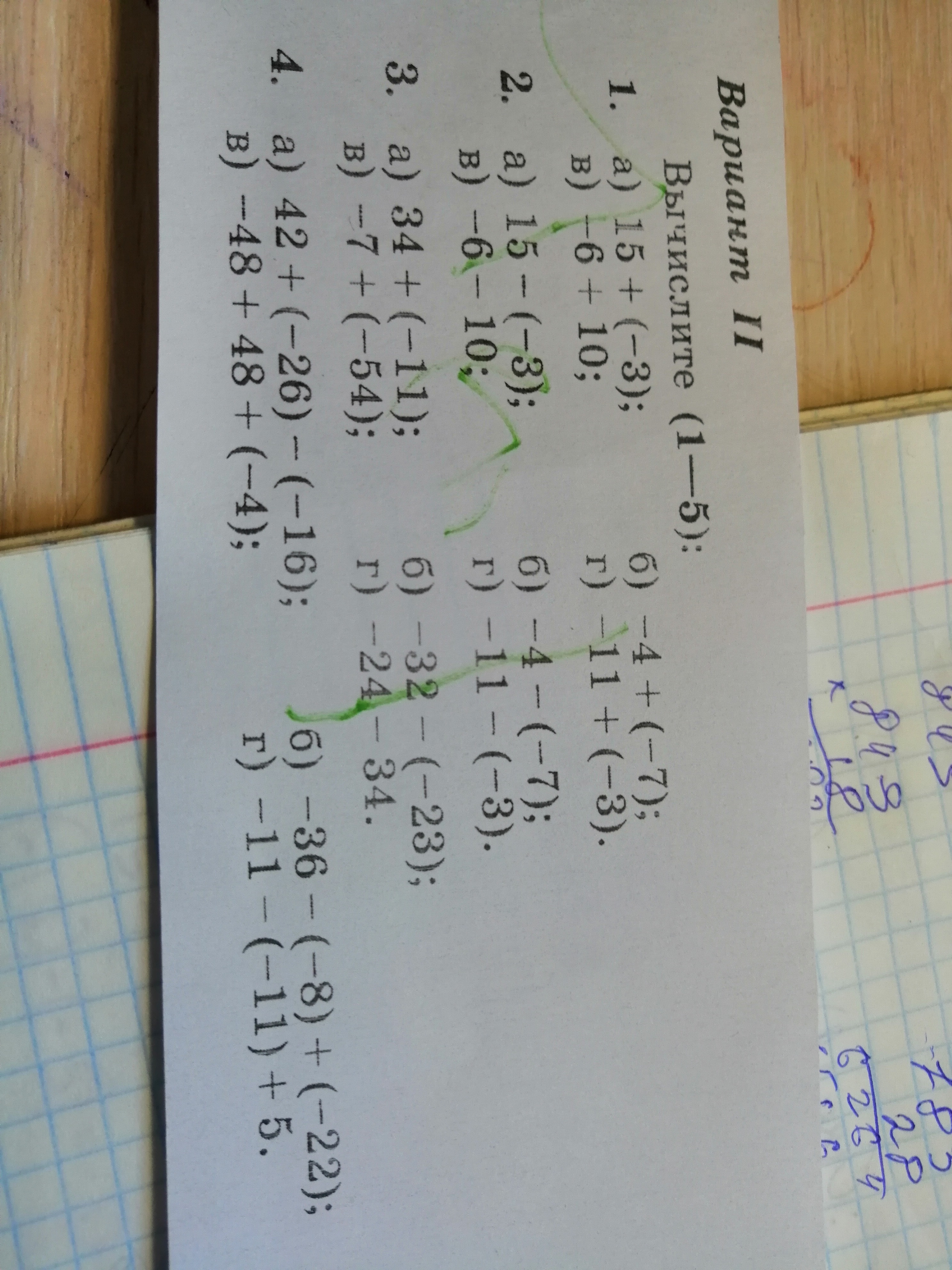 1 а) 15 + (-3)= 15-3=12 б) -4 +(-7)= -4 -7= -13 в) -6 +10 =4 г) -11+(-3)= -11 -3= -14
