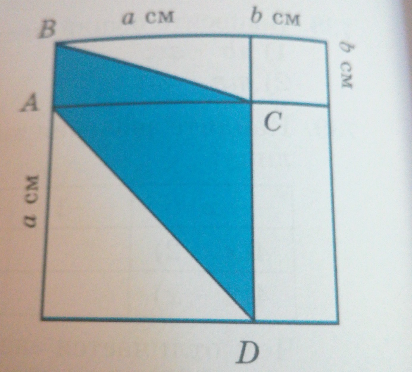 на рисунке 3.8 изображён квадрат со стороной А плюс б Найдите площадь заштрихованной фигуры ABCD Вычислите при а равно 6 см Б равно 2 см