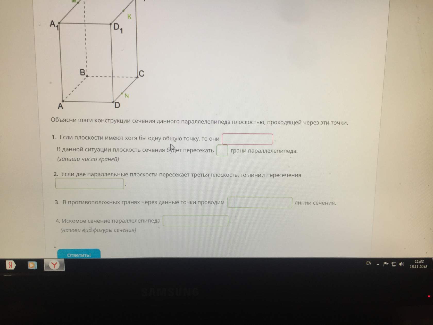 4. Параллелограмм MKNL и есть искомое сечение параллелепипеда.