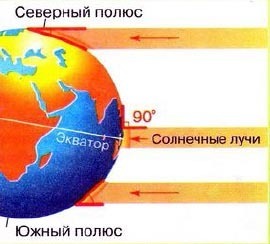 Потому, что земля шарообразной формы и наклонена к солнцу под углом. Поэтому на экваторе где солнечный луч попадает перпендикулярно теплее чем на полюсах