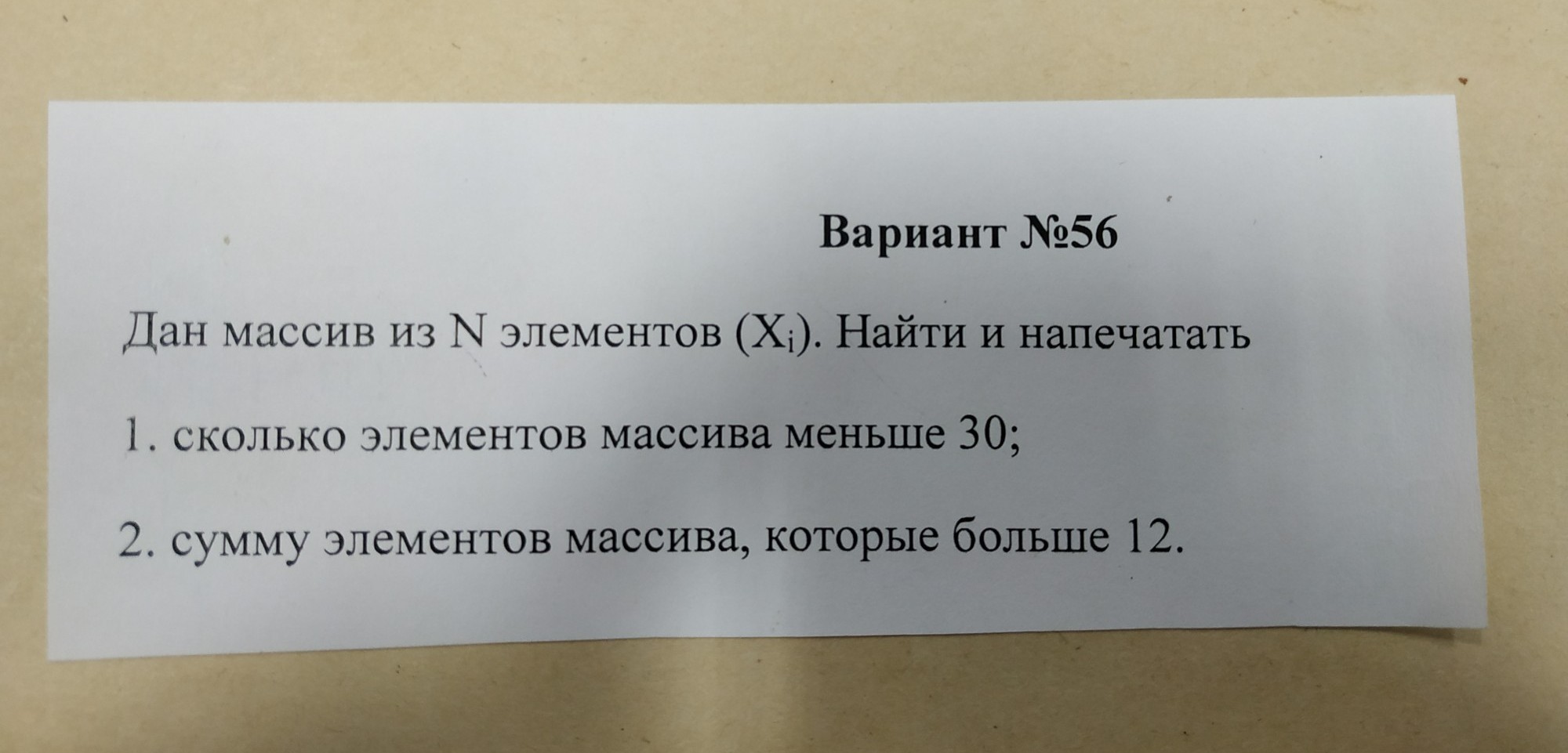 дан массив из n элементов(Xi). Найти и напечатать 1. элементов массива меньше 30