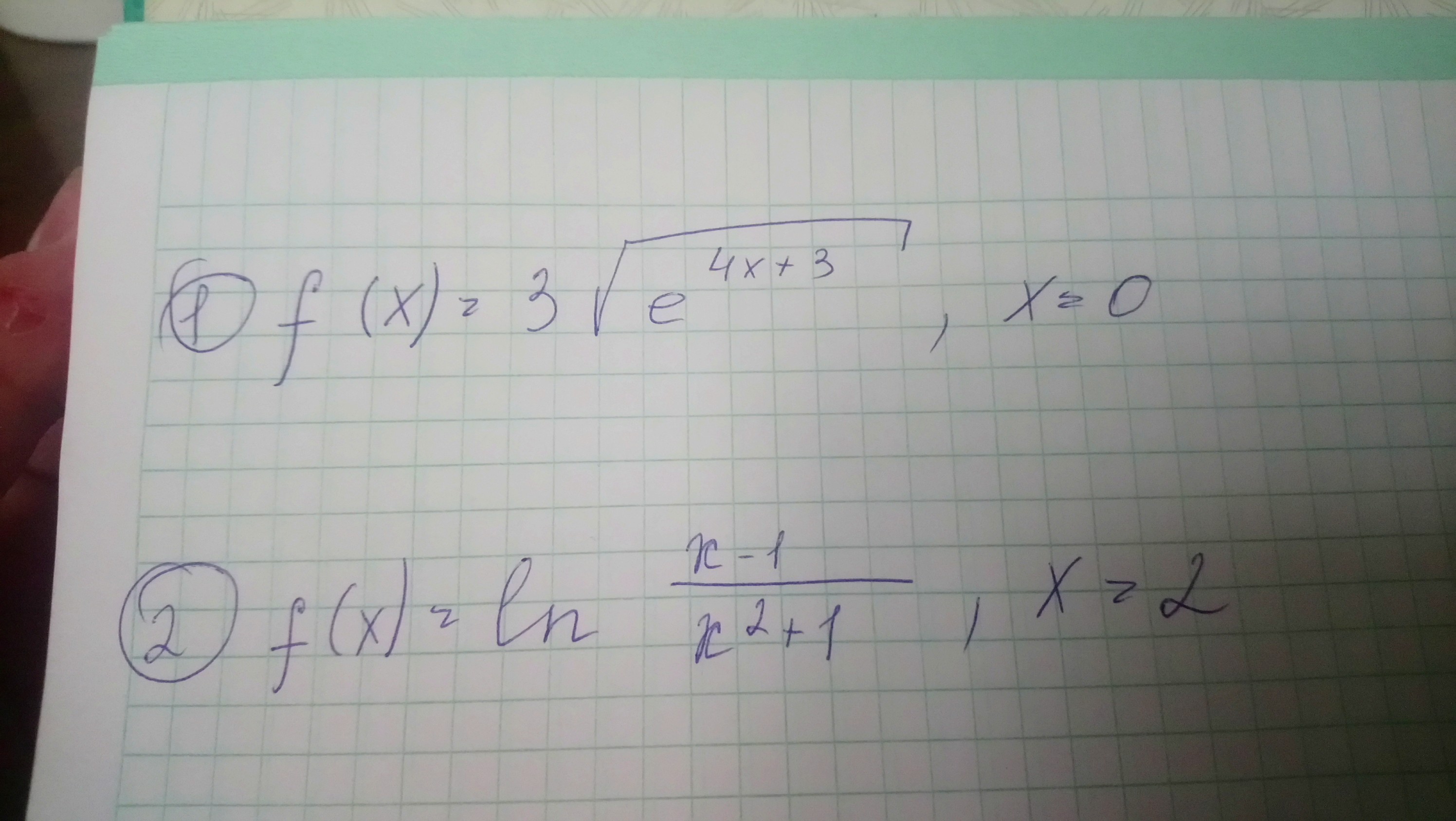 f(x)=3sqrt{e^{4x+3}} \f'(x)=3cdot dfrac{1}{2sqrt{e^{4x+3}}} cdot (e^{4x+3})'=dfrac{3}{2sqrt{e^{4x+3}}} cdot e^{4x+3}cdot(4x+3)'=\\=dfrac{3e^{4x+3}}{2sqrt{e^{4x+3}}}cdot4=6sqrt{e^{4x+3}}\\f'(0)=6sqrt{e^{4cdot0+3}}=6sqrt{e^3}=6esqrt{e}