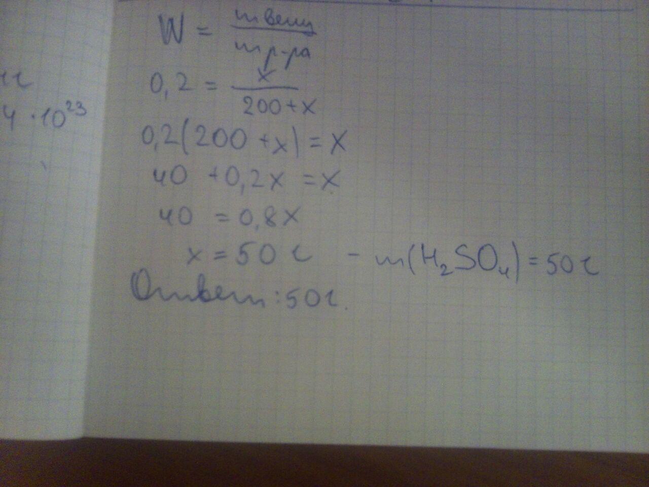 Сколько граммов серной кислоты надо добавить к 200г воды, что бы получить 20%-ный раствор кислоты