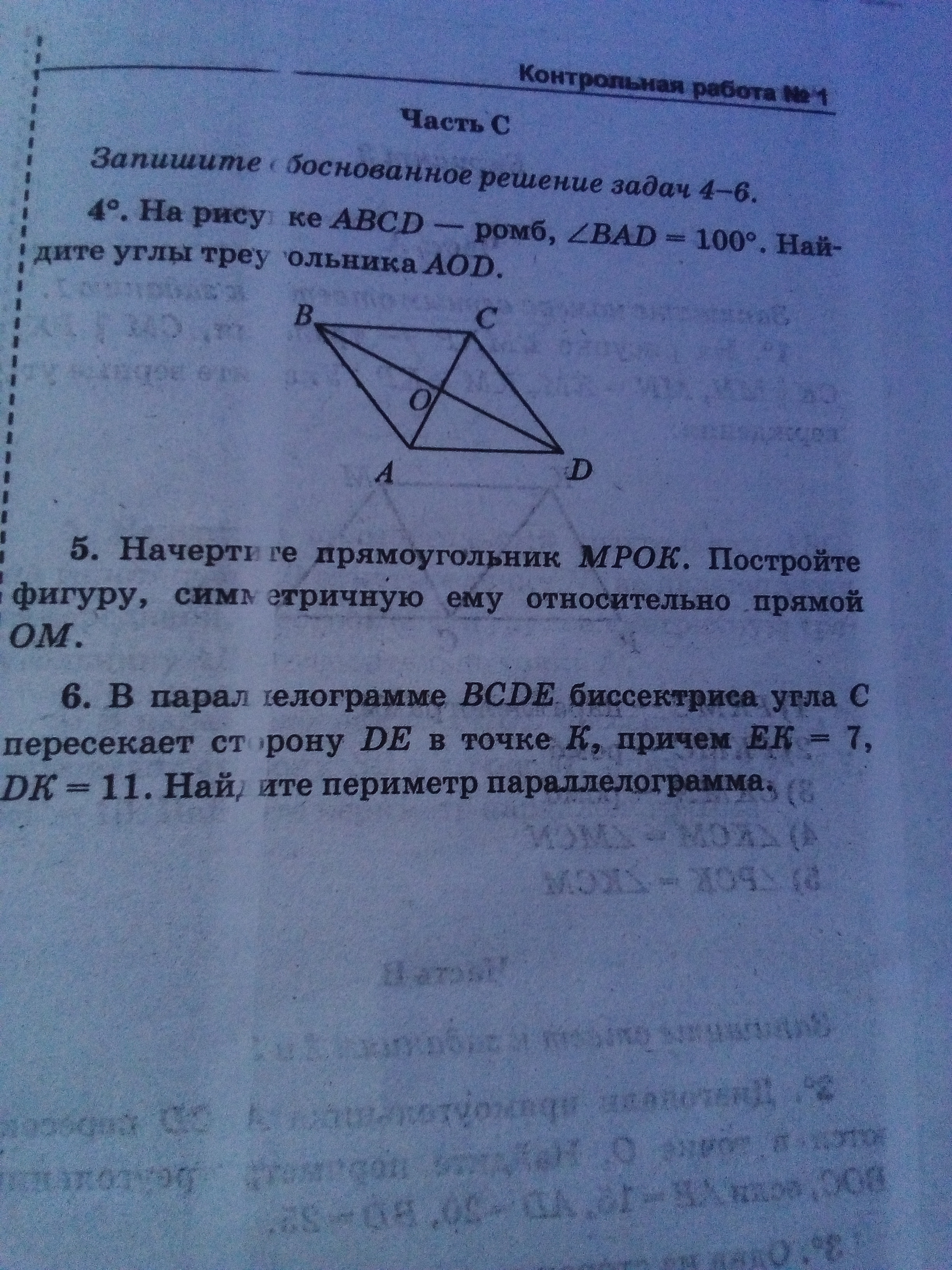 4) LAOD = 90 т.к. это ромб LOAD= 100:2=50 LODA = 180-(90+50)= 40