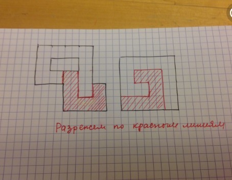 Разрежьте приведенную фигуру (рис 1.) на две части и сложите из получившихся частей квадрат