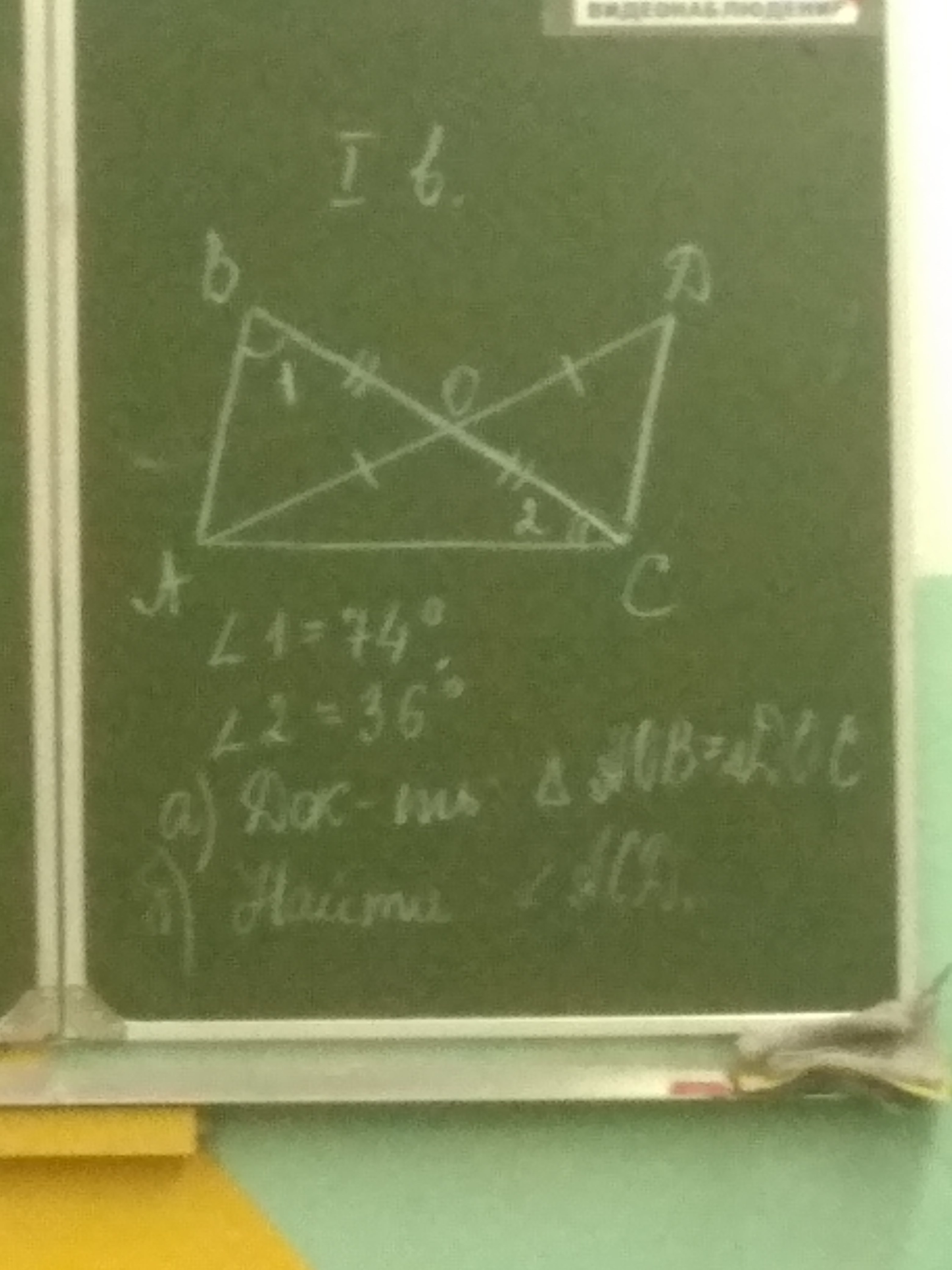 угол АВО = углу DCO = 74° (т.к. они накрест лежащие)
