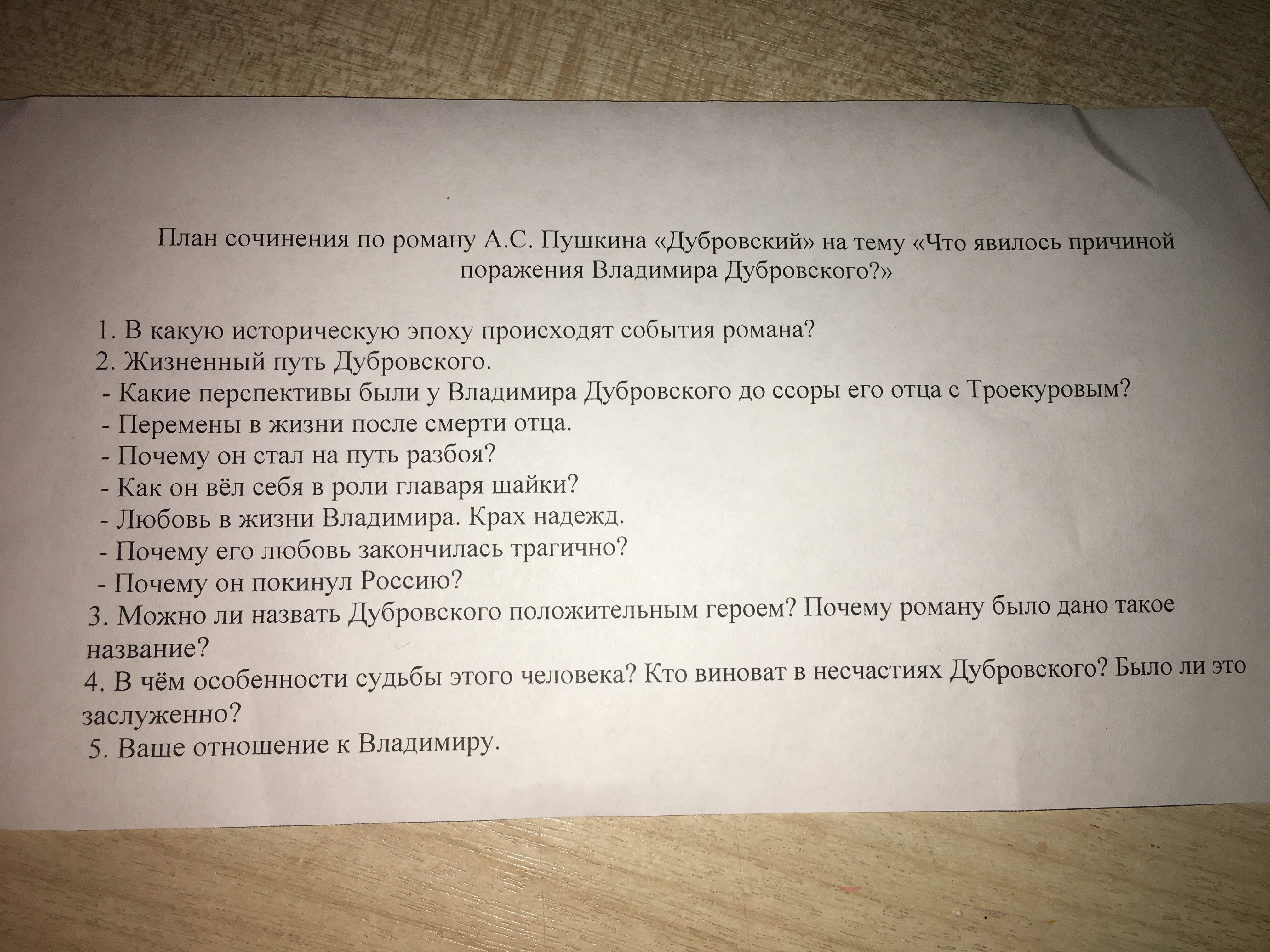 Сочинение на тему «Что явилось причиной поражения Владимира Дубровского?»