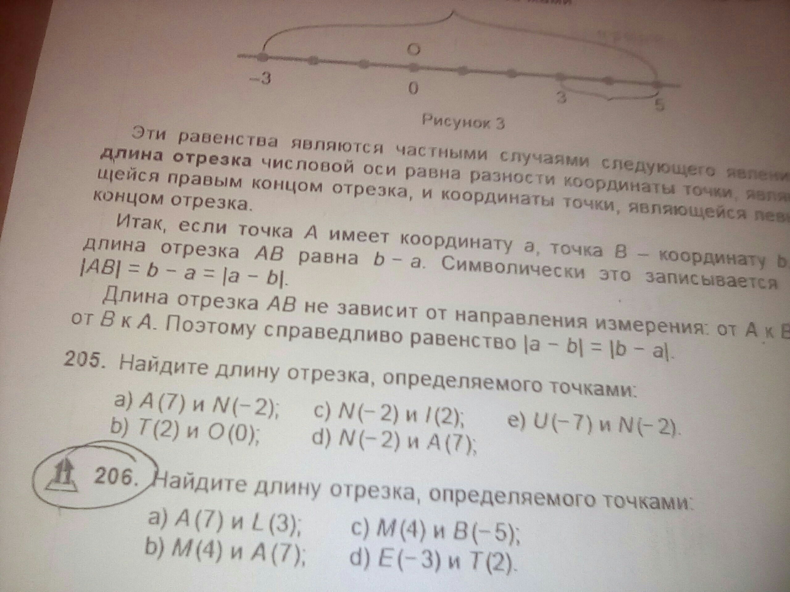 205. а) 9(т.к., построив прямую с лежащими на ней точками A(7) и N(-2), мы насчитаем 9 "делений"/отрезков между ними, т.е. это будет длина отрезка) . b) 2, c) 4, d) 9, e) 5