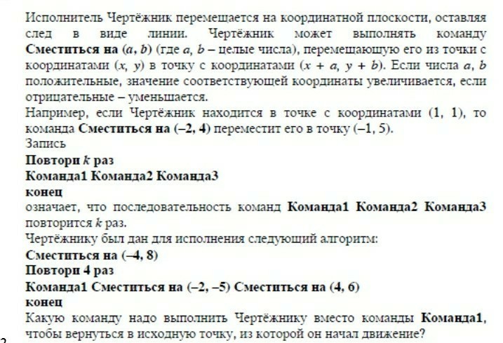 Чтобы Чертёжник вернулся в исходную точку координату в сумме должны давать 0.