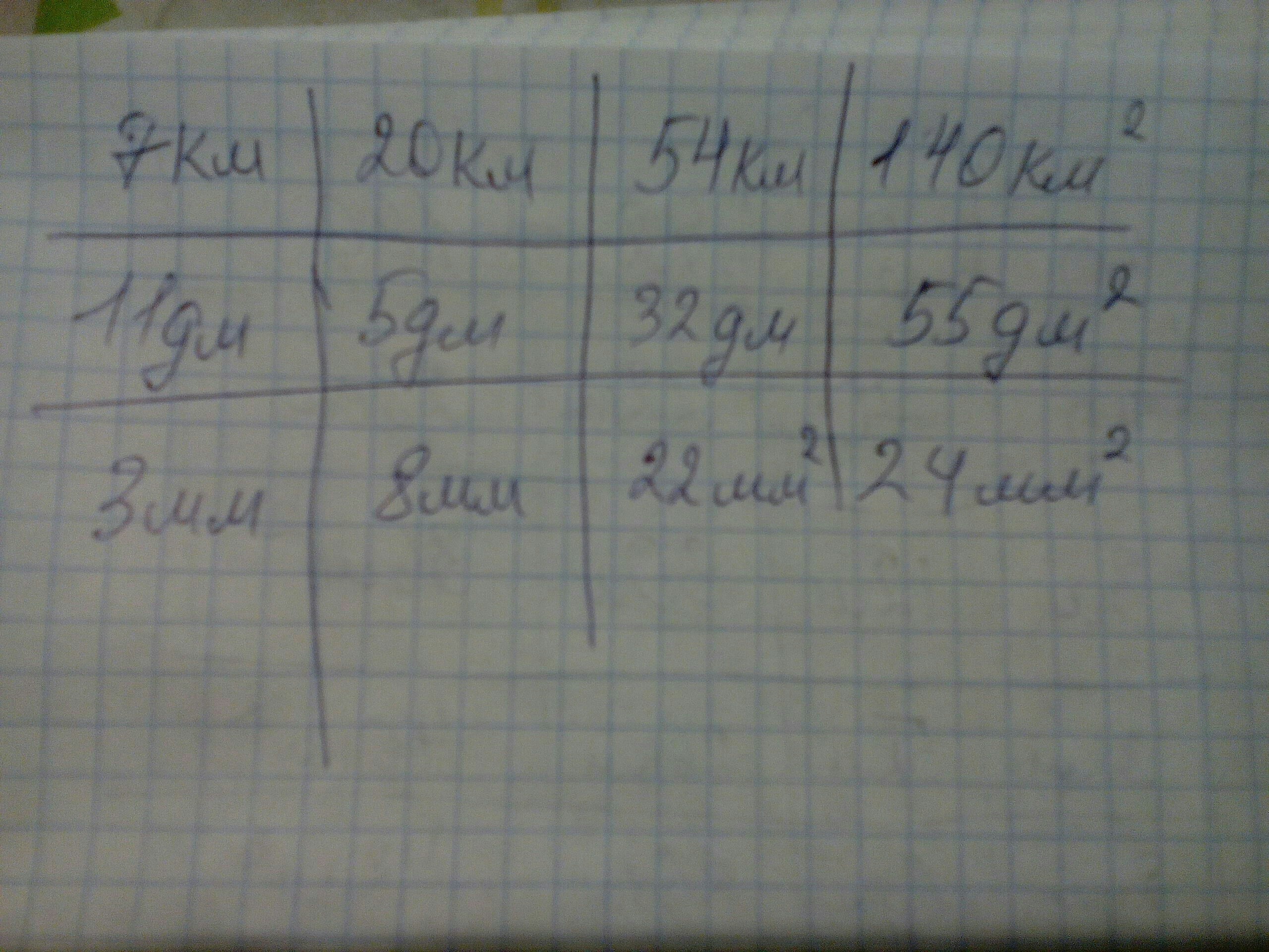 8ая строка : Длина - 4 км , Периметр - 16 км