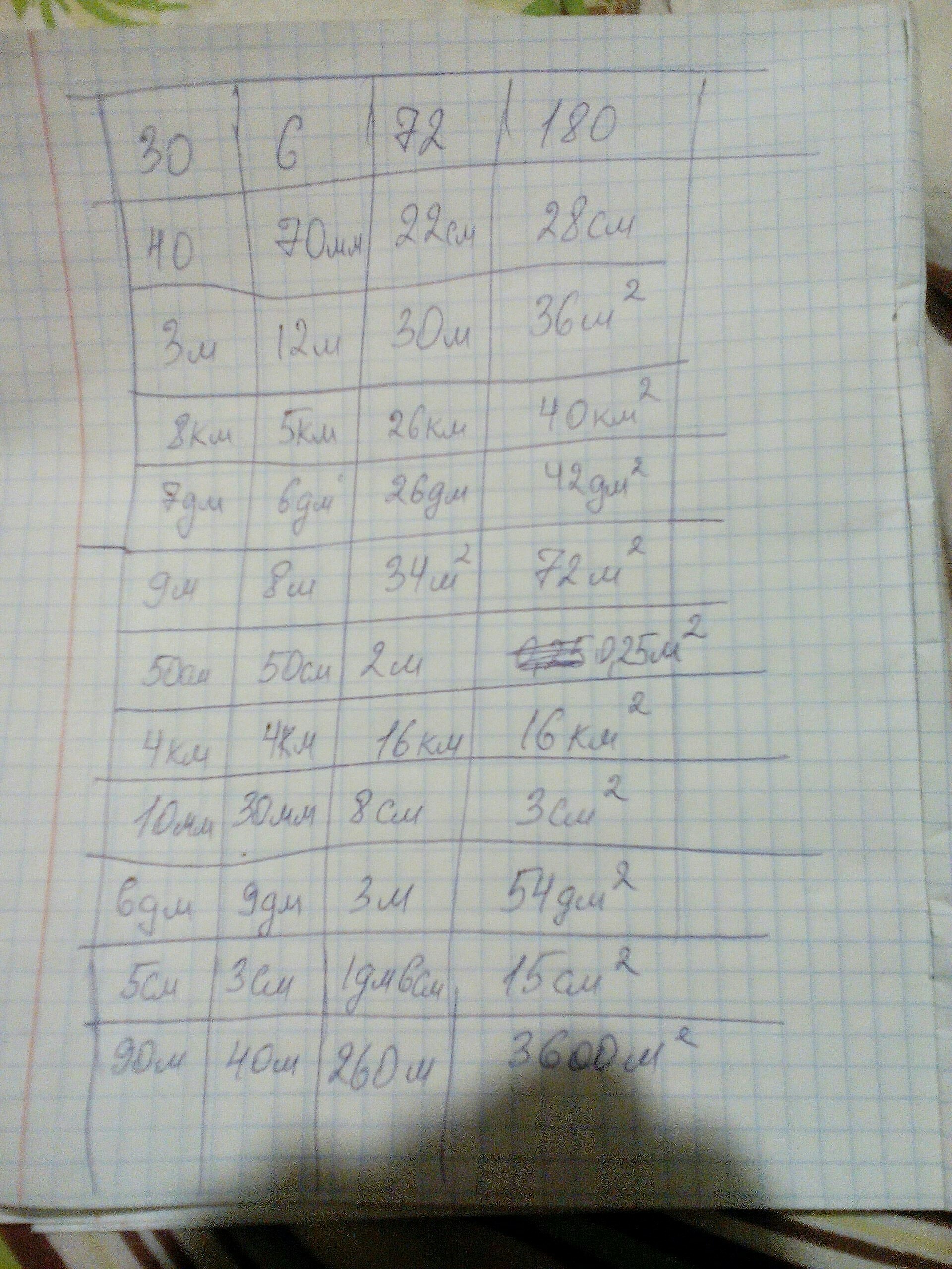 10ая строка : Ширина - 9 дм , Площадь - 45 дм²