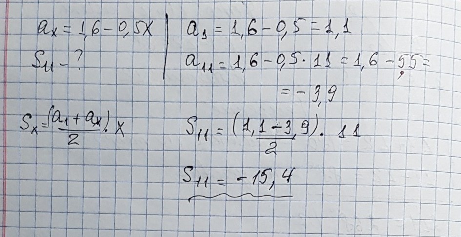 Арифметическая прогрессия задана условием aₓ=1,6−0,5x. Найдите сумму первых 11 её членов.