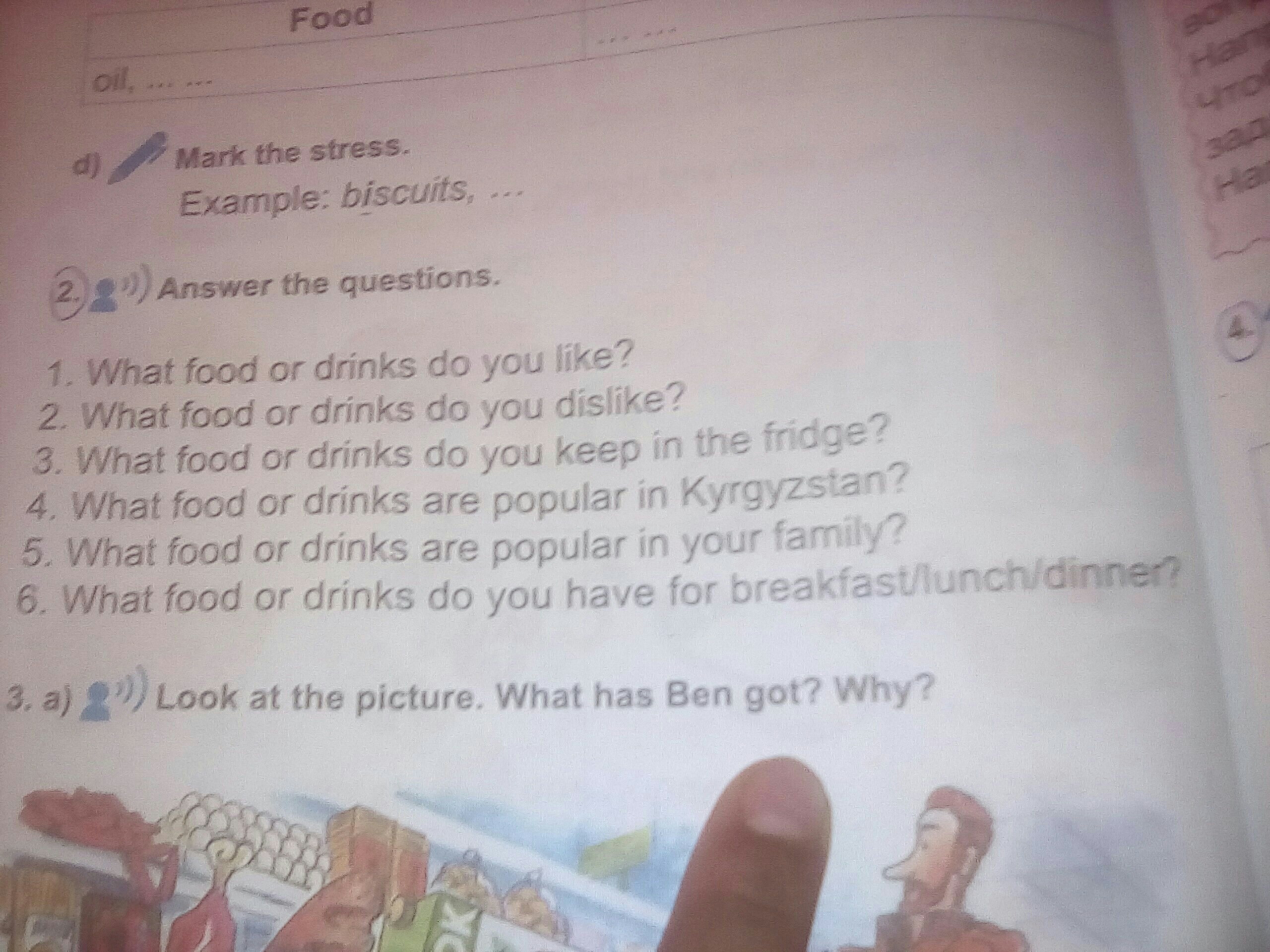 on the breakfast I can eat fried eggs with tea on the dinner I can eat rice with meat and on the lunch I can eat borsh