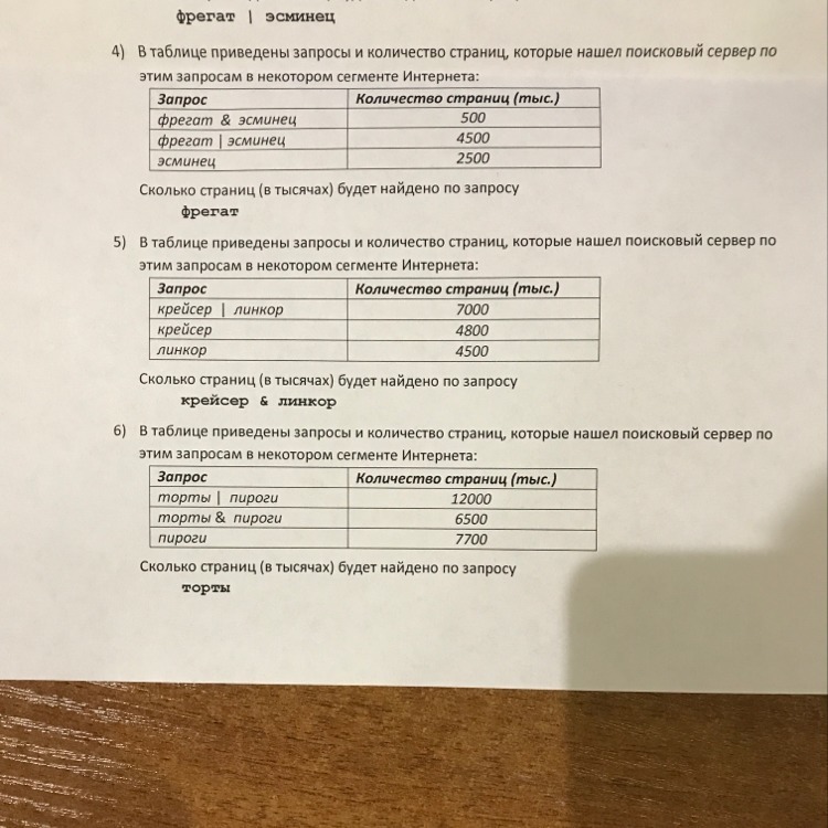 6) торты | пироги = торты + пироги - торты & пироги