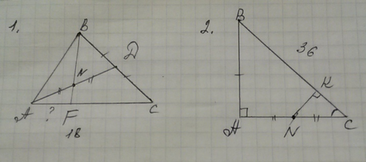 1) Точка N - середина медианы AD треугольника ABC. BN пересекает AC в точке F. Найдите AF, если AC = 18 см.