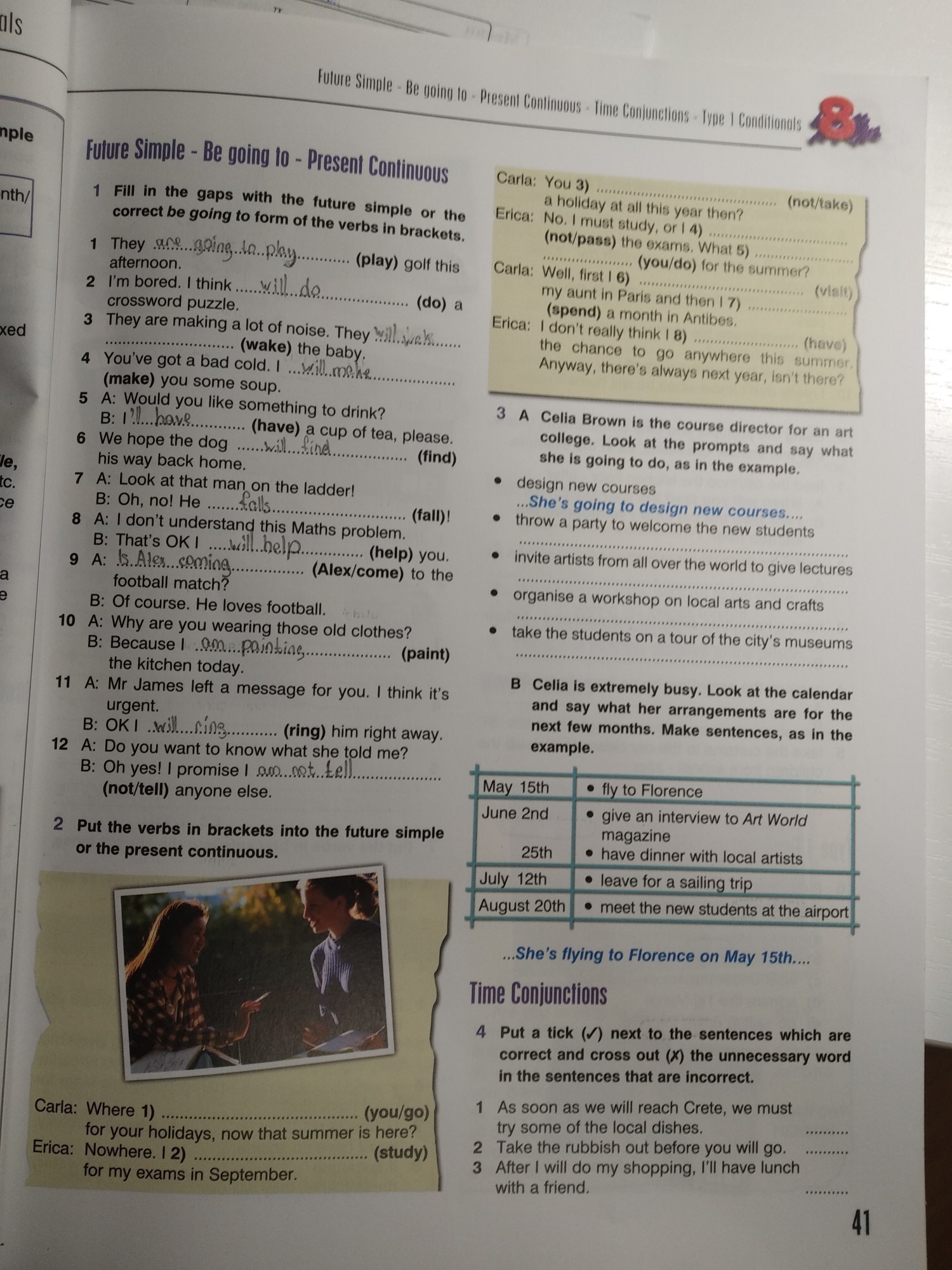 3 are not taking 4 will not pass 5 are you doing 6 will visit 7 will spend 8 will have